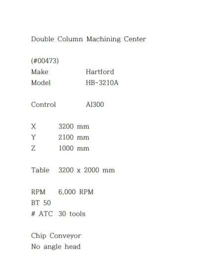 HARTFORD DOUBLE COLUMN VERTICAL MACHINING CENTER